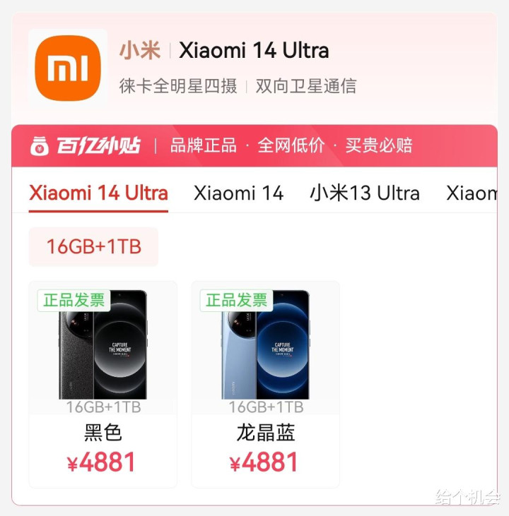 小米旗下很多款手机都出现降价,如小米15系列、小米14系列在国补后都有千元以上的降价,此时选这些老款就比较划算,即使是选顶级旗舰手机也很划算,这款小米14 ultra就是当初的顶级旗舰,顶配16G+1TB定价7799元,现在平台内降到4881元,降幅达到2918元,价格还是很有诚意的,等等党可以入手了。