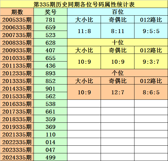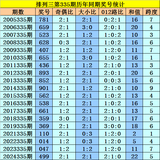 开奖回顾:排列三第2025334期开出奖号583,奖号012路比为1:0:2,大小比为2:1,奇偶比为2:1,最近三年第335期同期开出奖号为:第2022335期:014、第2023335期:047、第2024335期:499。