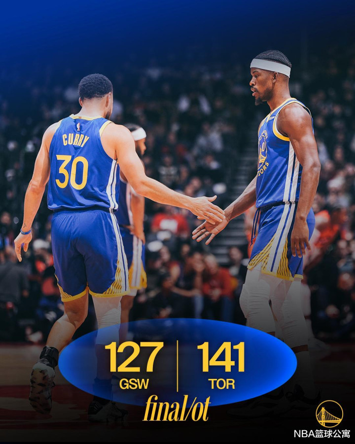 加时赛里,巴恩斯在禁区肆虐,勇士连丢篮板球。金州在进攻端陷入困境,库里、巴特勒都无法得分,猛龙多点开花,越战越勇,轰出了10比0的攻势就此锁定大局。勇士追分乏力,最终,猛龙以141比127完胜勇士,上演了13分逆转好戏。此役之后,勇士队的3连胜就此被终结,金州军团继续排在西部第8的位置。